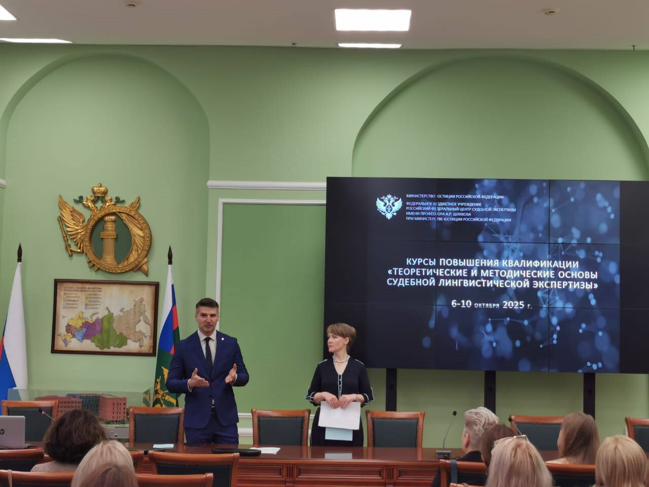 С 06.10.2025 по 10.10.2025 в ФБУ РФЦСЭ имени профессора А.Р. Шляхова при Минюсте России состоялись курсы повышения квалификации по теме «Теоретические и методические основы судебной лингвистической экспертизы» (экспертная специальность 26.1 «Исследование продуктов речевой деятельности»).